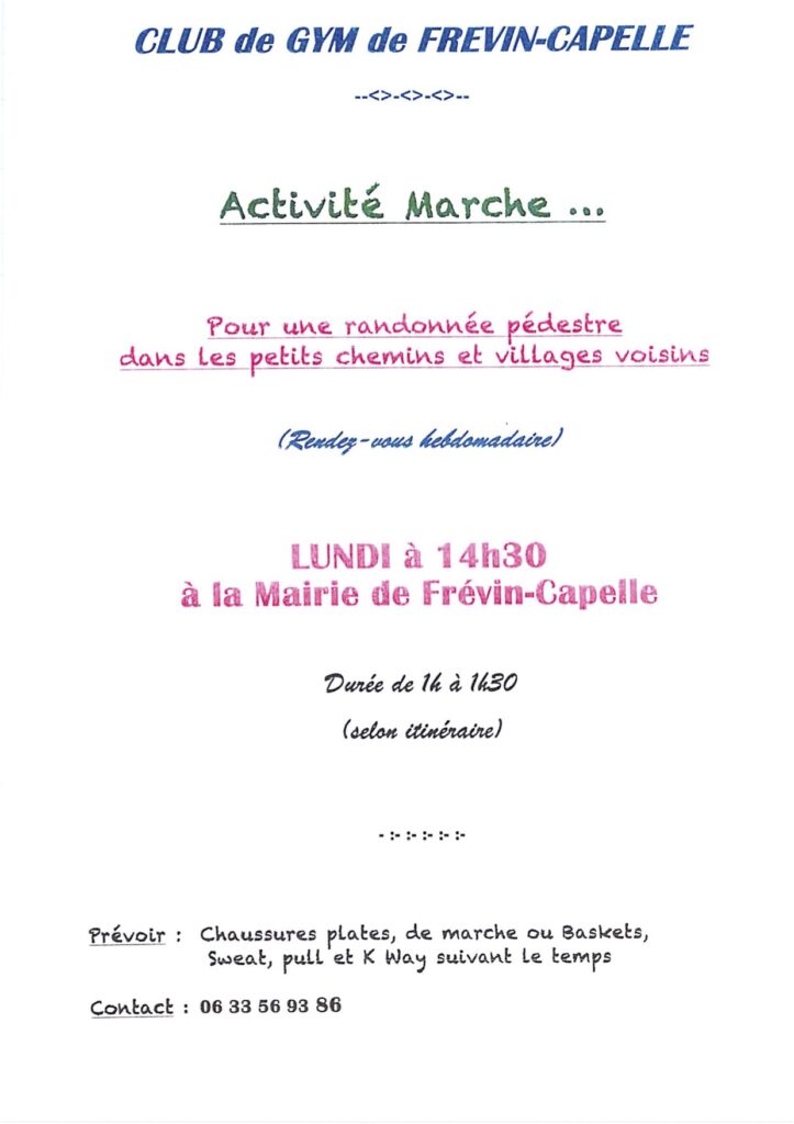 CLUB DE GYMNASTIQUE DE FREVIN-CAPELLE Siège social : Mairie de Frévin-Capelle